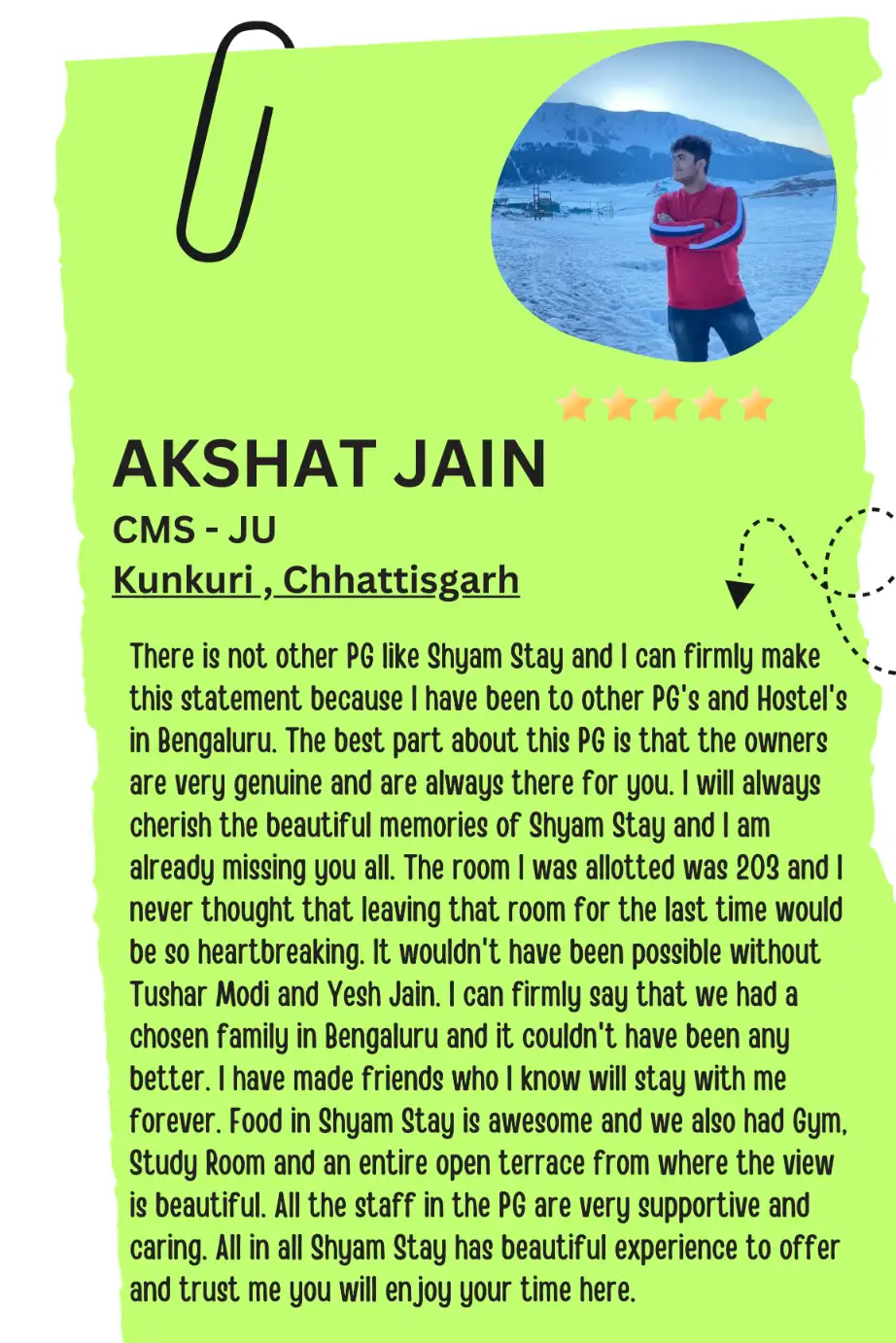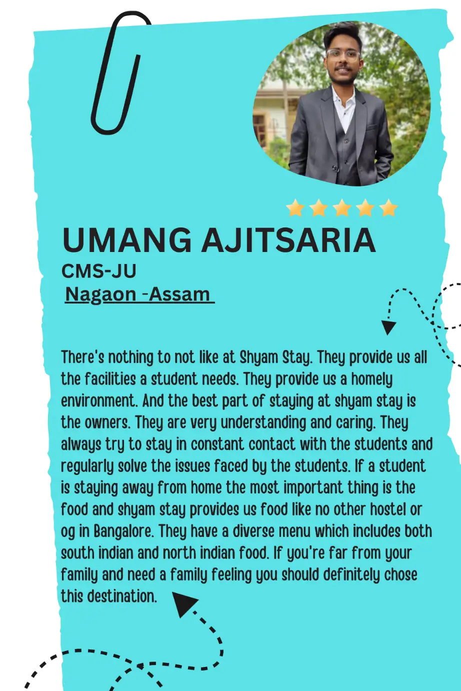 At Shyam Stay, we offer comfortable and affordable paying guest (PG) accommodations in the heart of Bengaluru, specifically designed for students and working professionals. Our prime locations are close to top educational institutions, and we provide a variety of accommodations options along with homely amenities. We are committed to ensuring a safe, supportive, and community-driven environment for all our residents.